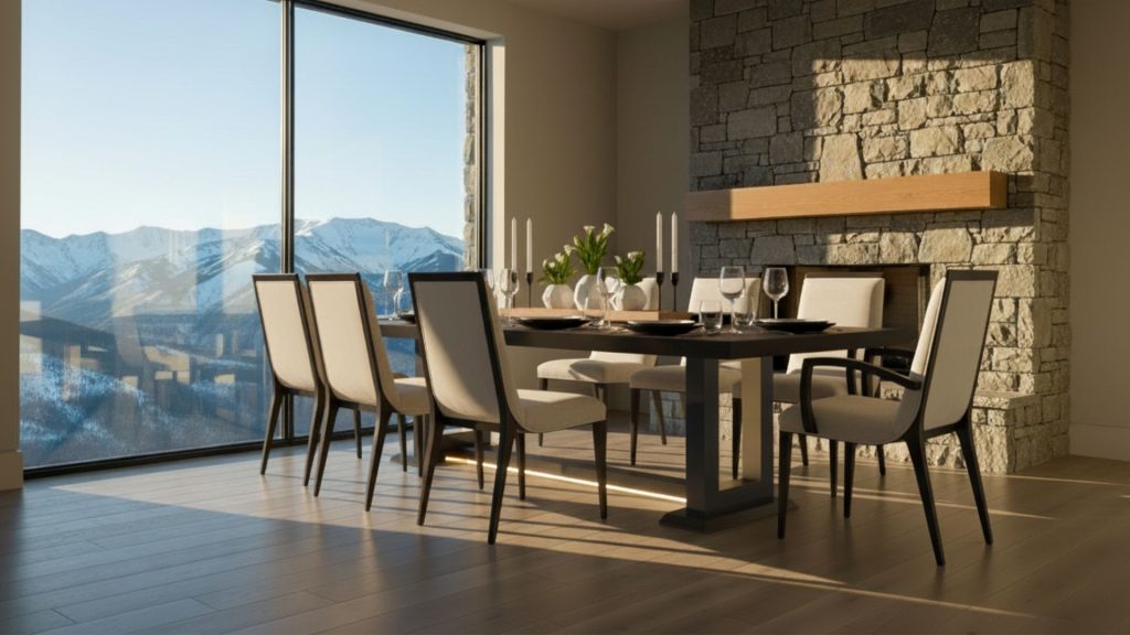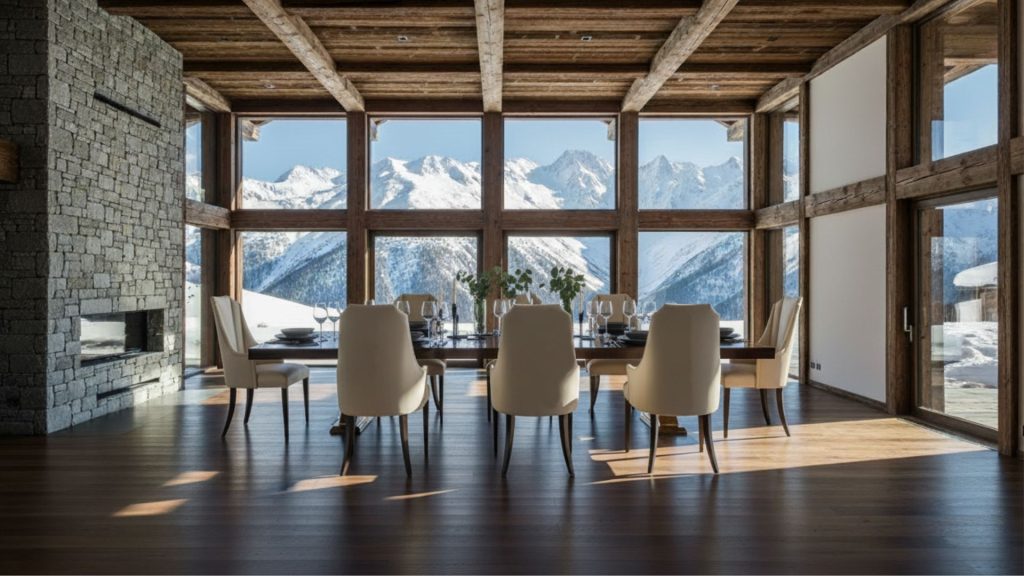 In un chalet di fascia alta, il tavolo è molto più di un complemento: è il fulcro della convivialità.