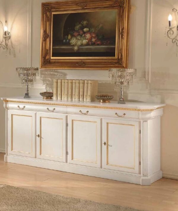 Il 2007/L è una credenza realizzata in legno massello, con dettagli intagliati a mano che richiamano l’eleganza lo stile classico.