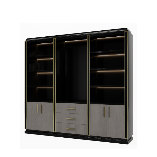 La libreria DD8502 è un elemento raffinato e funzionale della collezione STUDIO PRIVÈ di Guerra Vanni. Presenta una struttura modulare in laccata black brown con ante finite natural eucalyptus che unisce design contemporaneo e artigianalità pregiata.