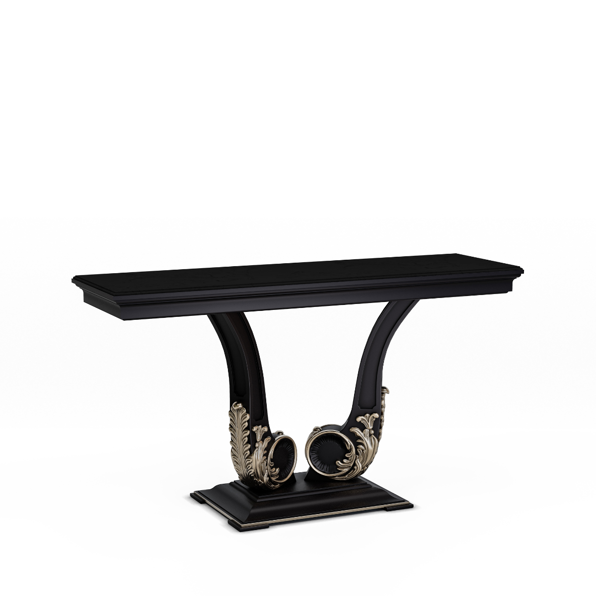 La consolle DW8108 è un elemento raffinato e funzionale della collezione STUDIO PRIVÈ di Guerra Vanni. Presenta un piano in legno pregiato e una struttura in finitura Black con dettagli in foglia d’argento anticata, che insieme esprimono un’eleganza senza tempo e una grande qualità artigianale.