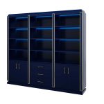 La sua altezza elevata la rende ideale per ambienti ufficio spaziosi o contesti contract, mentre la combinazione di ripiani aperti e vani chiusi garantisce sia espositività curata che organizzazione ottimale.