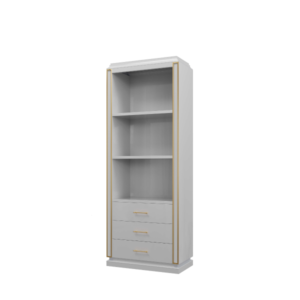 La libreria SD8602 è un elemento centrale e raffinato della collezione STUDIO PRIVÈ di Guerra Vanni. La struttura è in legno massello e laccata White con decorazioni in foglia oro. Progettata per funzionalità ed equilibrio estetico, questa libreria offre comodi e ampi ripiani, mantenendo un aspetto ordinato e ricercato.