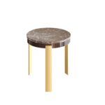 QUESTO TAVOLINO È INTERAMENTE REALIZZATO IN LEGNO IMPREZIOSITO DA FINITURE DI UNICA RAFFINATEZZA. LE TRE GAMBE DRITTE E SOTTILI SONO PLACCATE CON UNA FOGLIA D’ORO, MENTRE IL PIANO ROTONDO IN LEGNO COMBINA UNA FINITURA MARRONE CIOCCOLATO CON UNA SPLENDIDA DECORAZIONE DIPINTA A MANO CHE RIPRODUCE LE AFFASCINANTI VENATURE DEL MARMO EMPERADOR.